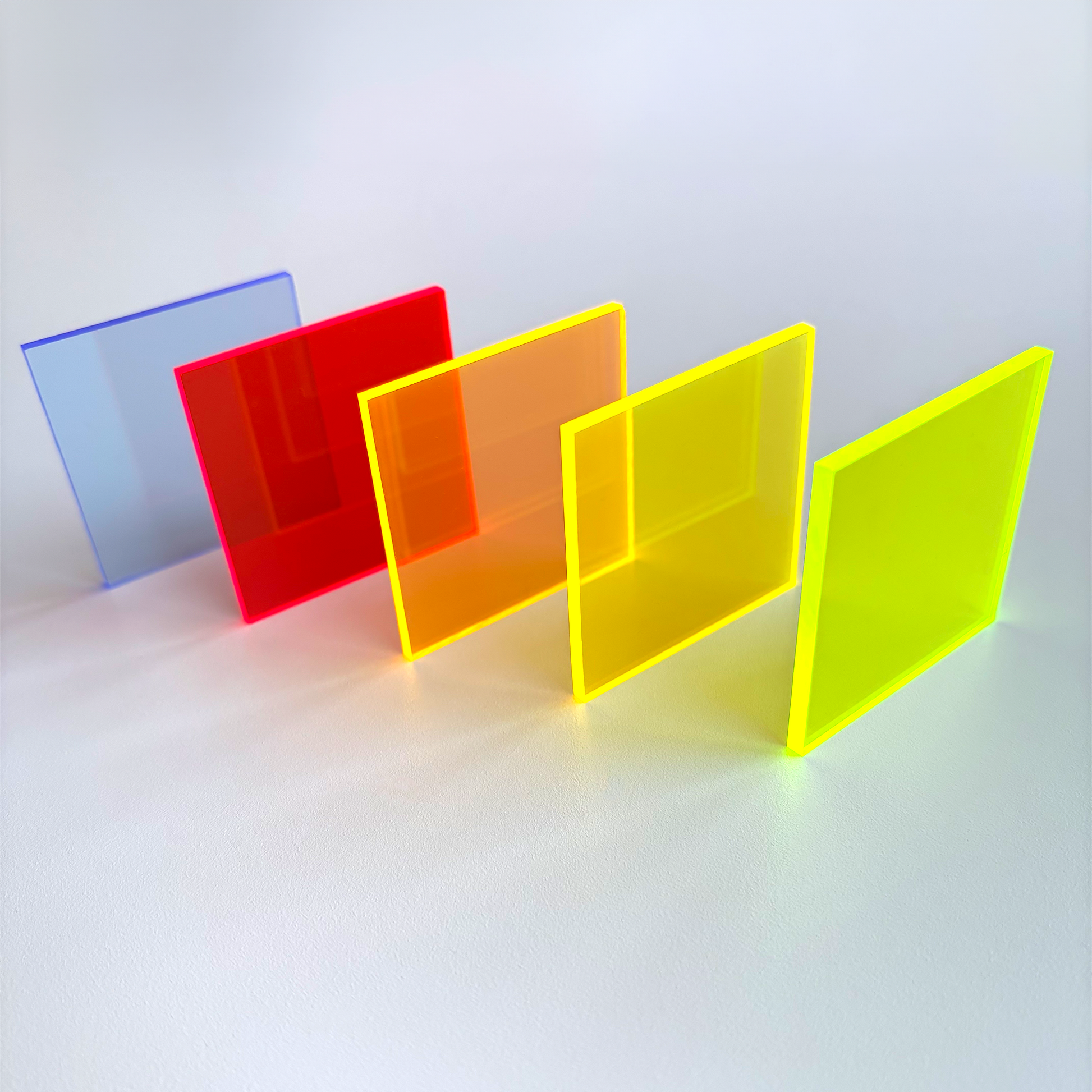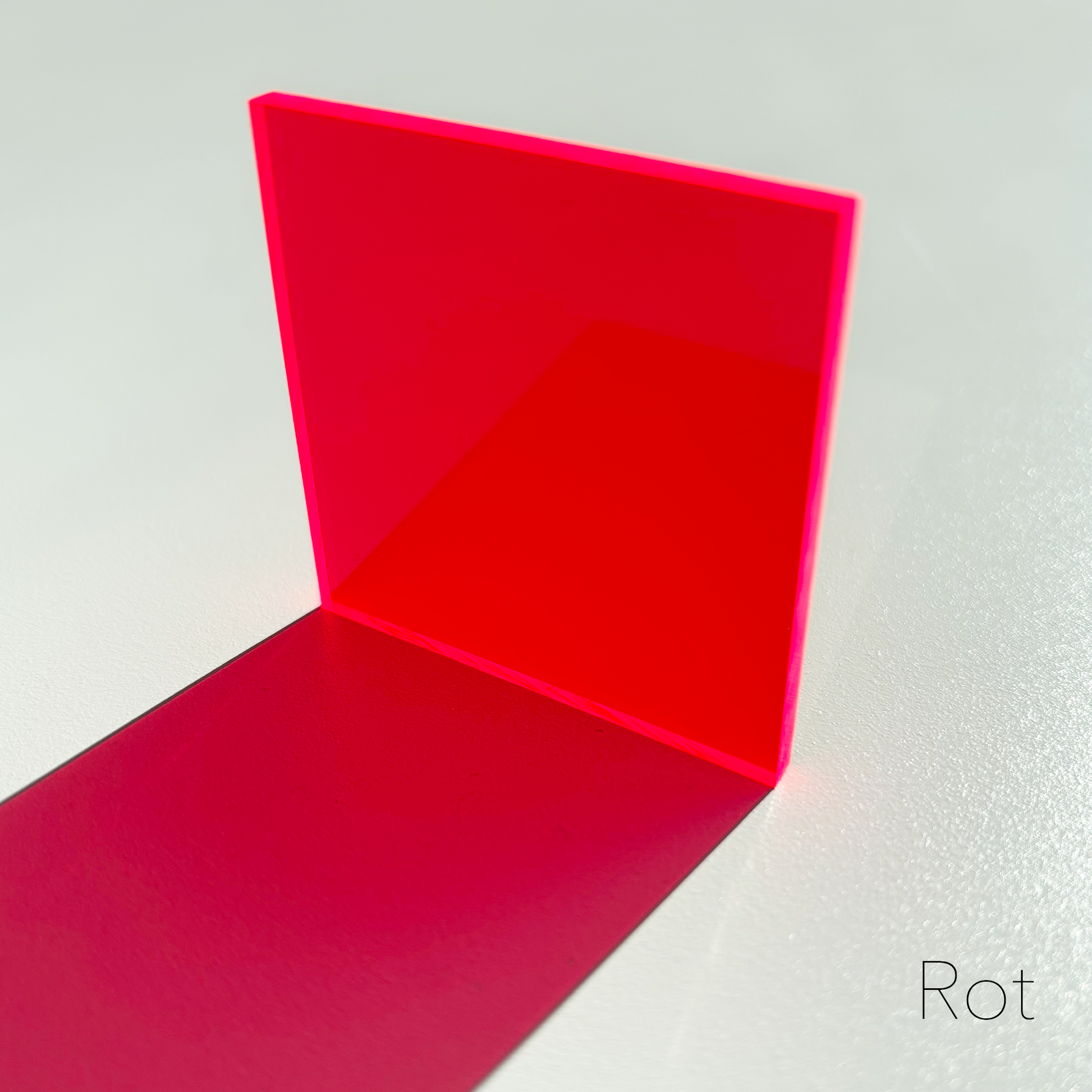 Fluorescent acrylic glass in a color of your choice. Available colors: blue, yellow, green, orange, and red.